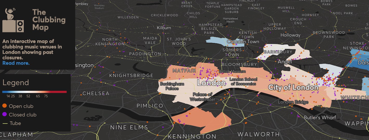Die interaktive Londoner Clubbing Map macht die Entwicklung über die Zeit hinweg sichtbar.