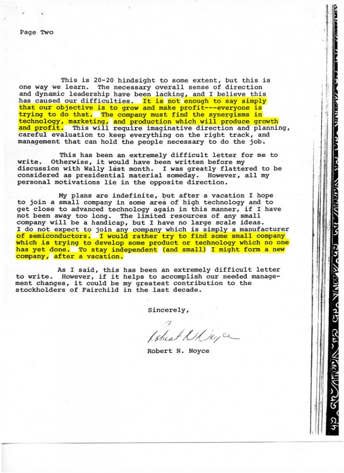Robert Noyce Kündigungsschreiben